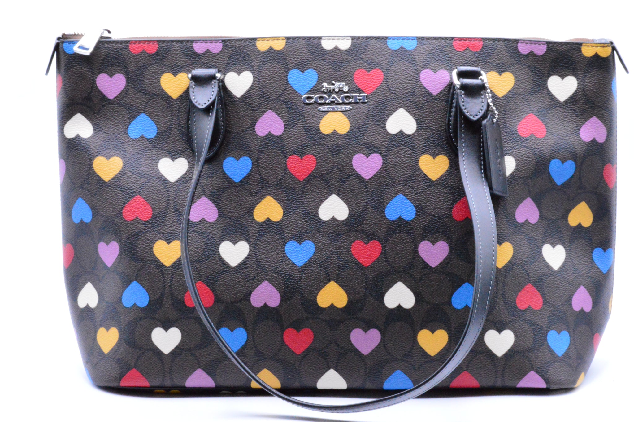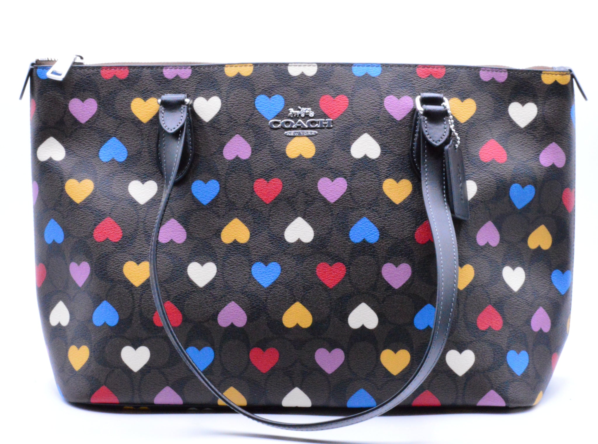 COACH Gallery Tote Signature Canvas & Leather With Heart Print Brown Black CP108